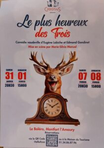Retrouvez La troupe des Cabotins avec leur nouveau spectacle : Le Plus Heureux des Trois, Mise en scène par Marie-Silvia MANUEL